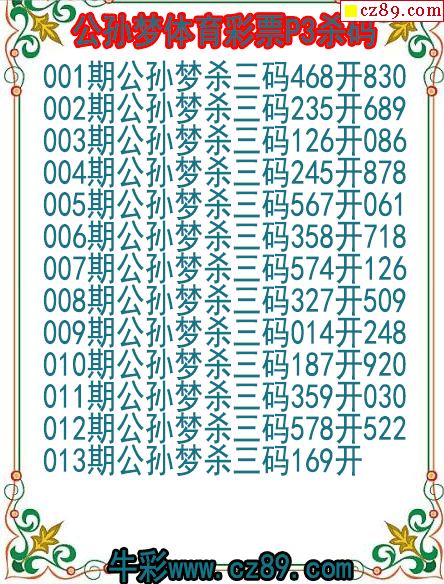 26年013期公孙梦体育彩票P3杀码图